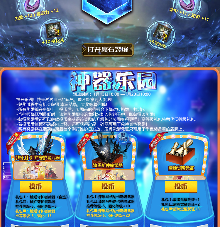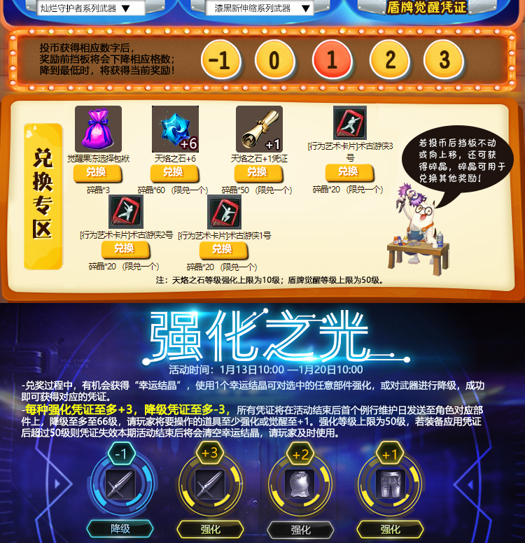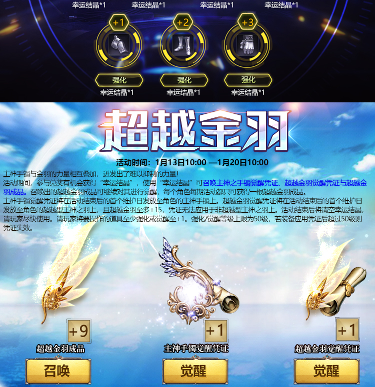 觉醒凭证、强化凭证等奖励,将在活动结束后的例行维护日统一发放,请获奖玩家将要操作的道具装备在身上,并至少强化或觉醒至+1,如未装备视为自动放弃。