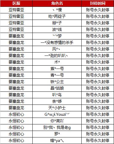 注:被封停的角色将影响其活动的成绩与排名,敬告各位玩家不要使用任何不正确手段。