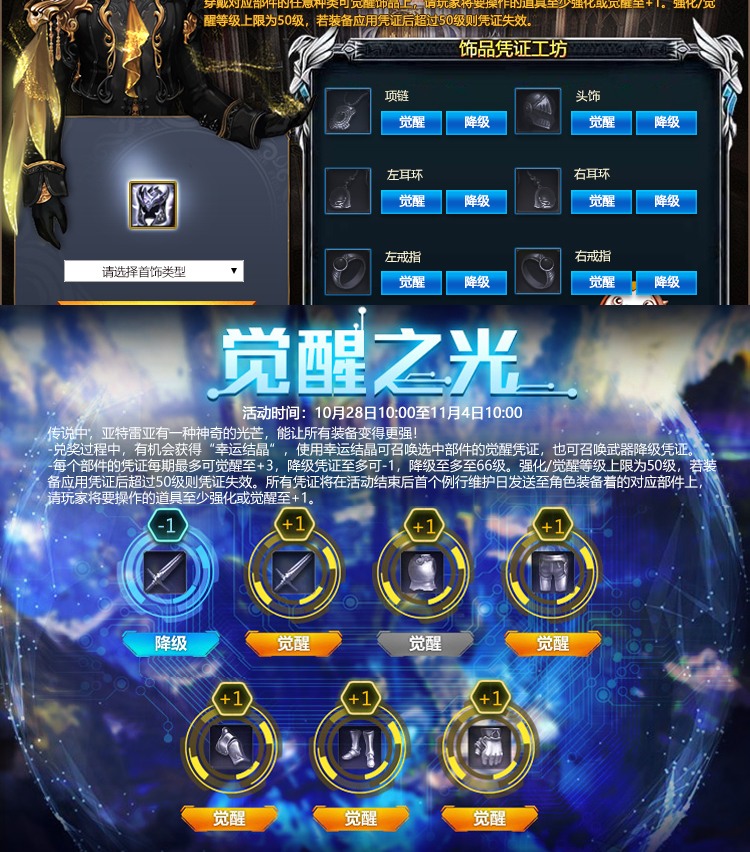 觉醒凭证、强化凭证等奖励,将在活动结束后的例行维护日统一发放,请获奖玩家将要操作的道具装备在身上,并至少强化或觉醒至+1,如未装备视为自动放弃。