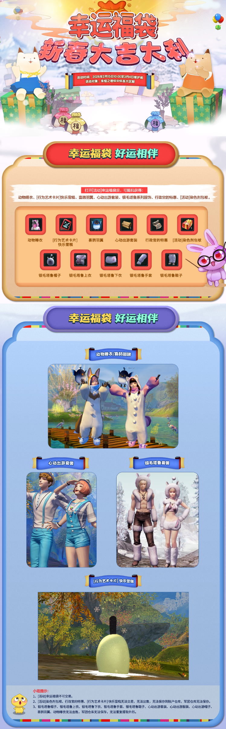 马跃新春福满永恒,微风商会新春福利登场。幸运福袋惊喜上线,动物睡衣、喜鹊翅膀、心动出游套装随机降临好运不断;光芒之戒荣光再临,赢取主神白杰尔的荣耀!