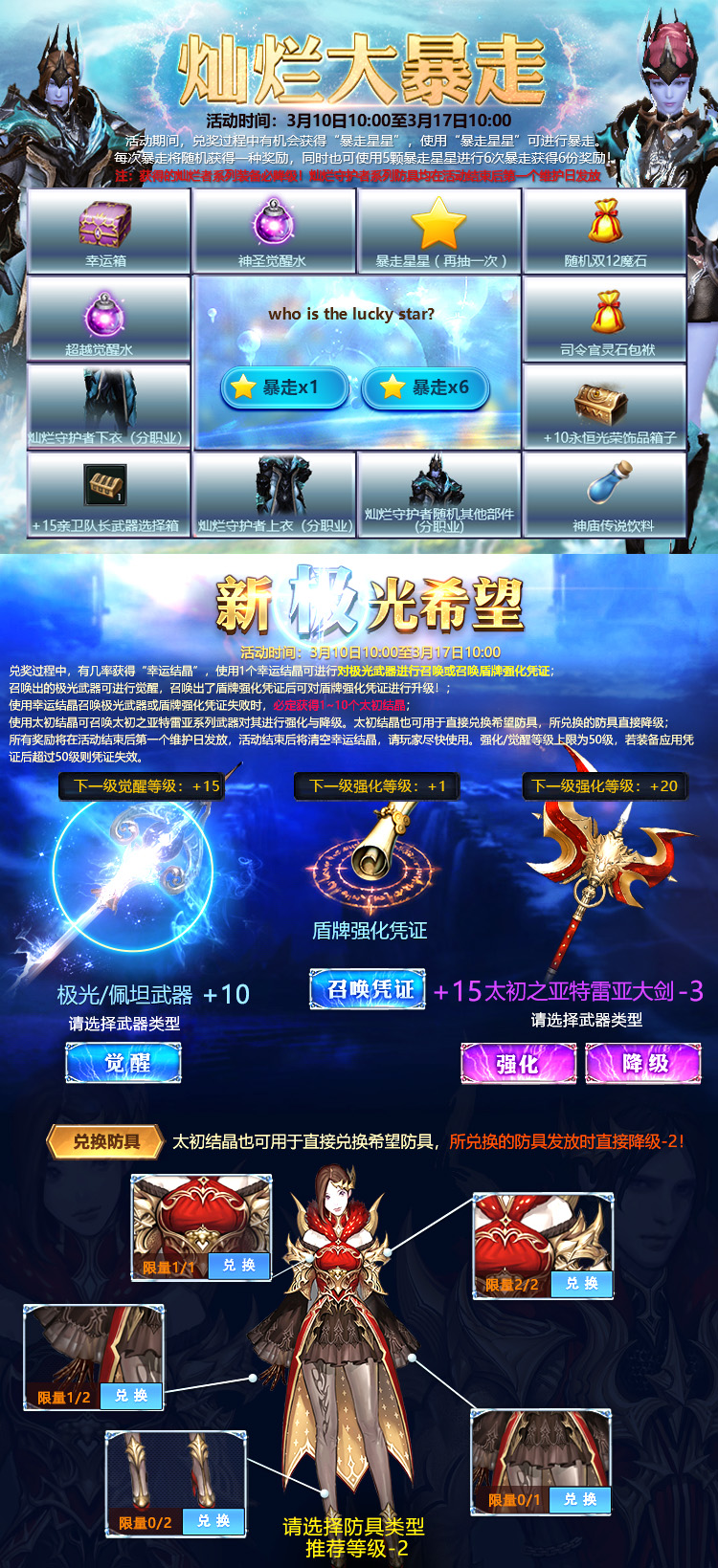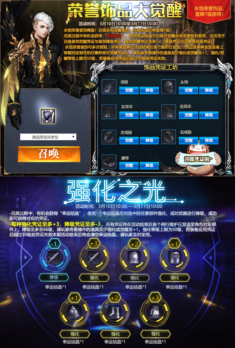 觉醒凭证、强化凭证等奖励,将在活动结束后的例行维护日统一发放,请获奖玩家将要操作的道具装备在身上,并至少强化或觉醒至+1,如未装备视为自动放弃。