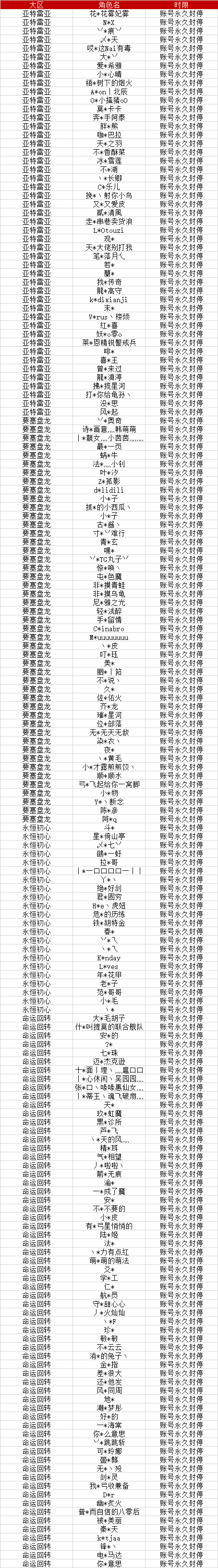 经GPK保障扫描后,今日我们对以下180个违规的账号实施了封停。在此我们严正申明,对仍抱有侥幸心理妄图使用不正确手段而影响到游戏公平环境的行为,《永恒之塔》GPK保障将会以实际行动证明她的决心!