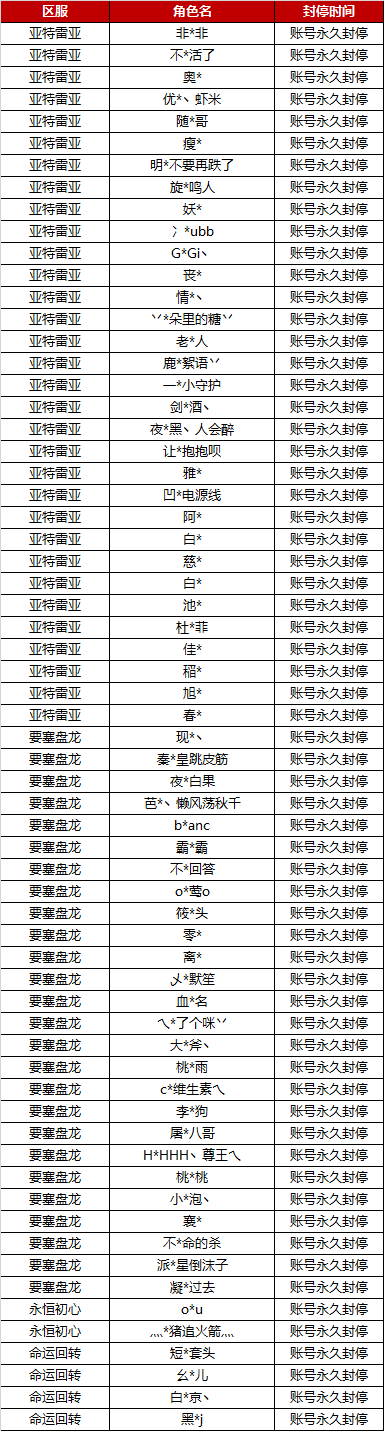 注:被封停的角色将影响其活动的成绩与排名,敬告各位玩家不要使用任何不正确手段。