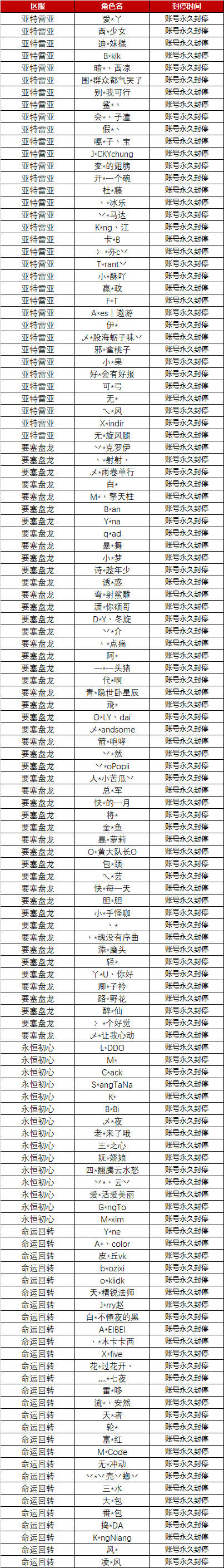 注:被封停的角色将影响其活动的成绩与排名,敬告各位玩家不要使用任何不正确手段。