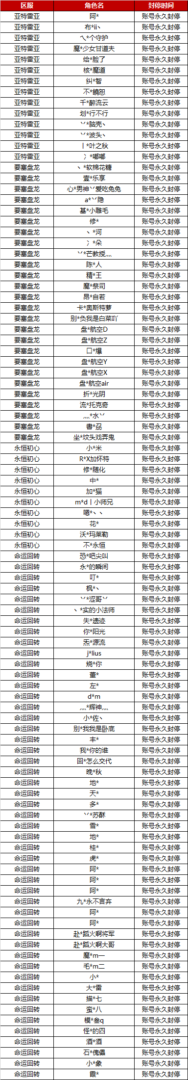 注:被封停的角色将影响其活动的成绩与排名,敬告各位玩家不要使用任何不正确手段。