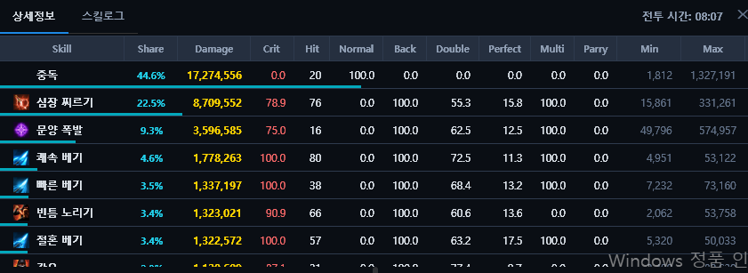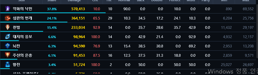근데 딜량 상세정보 보다가 이상한걸 발견했는데 살성 상세정보 입니다.
