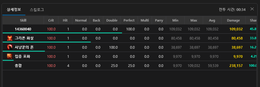 일단 궁성 스티그마 폭발화살 쓰면 스킬명이 제대로 안뜨고 저렇게 14360040 로 표기됩니다